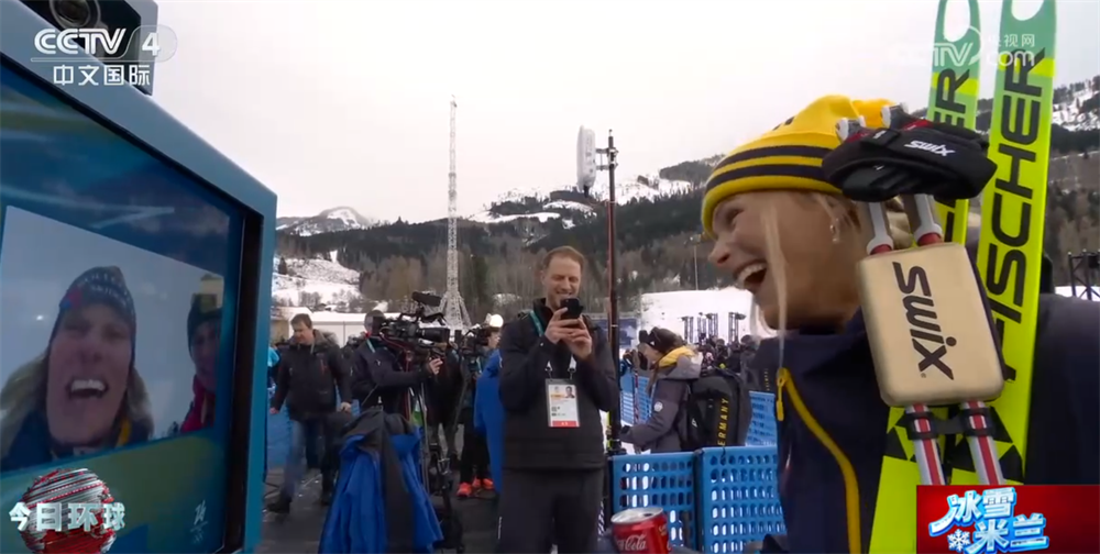 在利维尼奥雪山公园,几乎在每一个奥运赛场都有一个运动员连线时刻的装置,方便运动员们在赛后第一时间跟自己的朋友或者家人分享比赛的感受,这样的装置也是由中国的赞助商独家设置的。