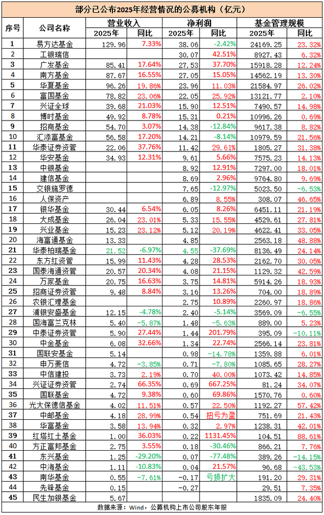 2025年的公募机构的年报数据显示,牌照红利正在加速消退,躺赢时代彻底终结。过去,一张公募牌照就意味着可观的规模与利润;如今,行业分化从规模延续至经营结果,投研深度、产品创新、精细化运营正成为决定座次的核心变量。