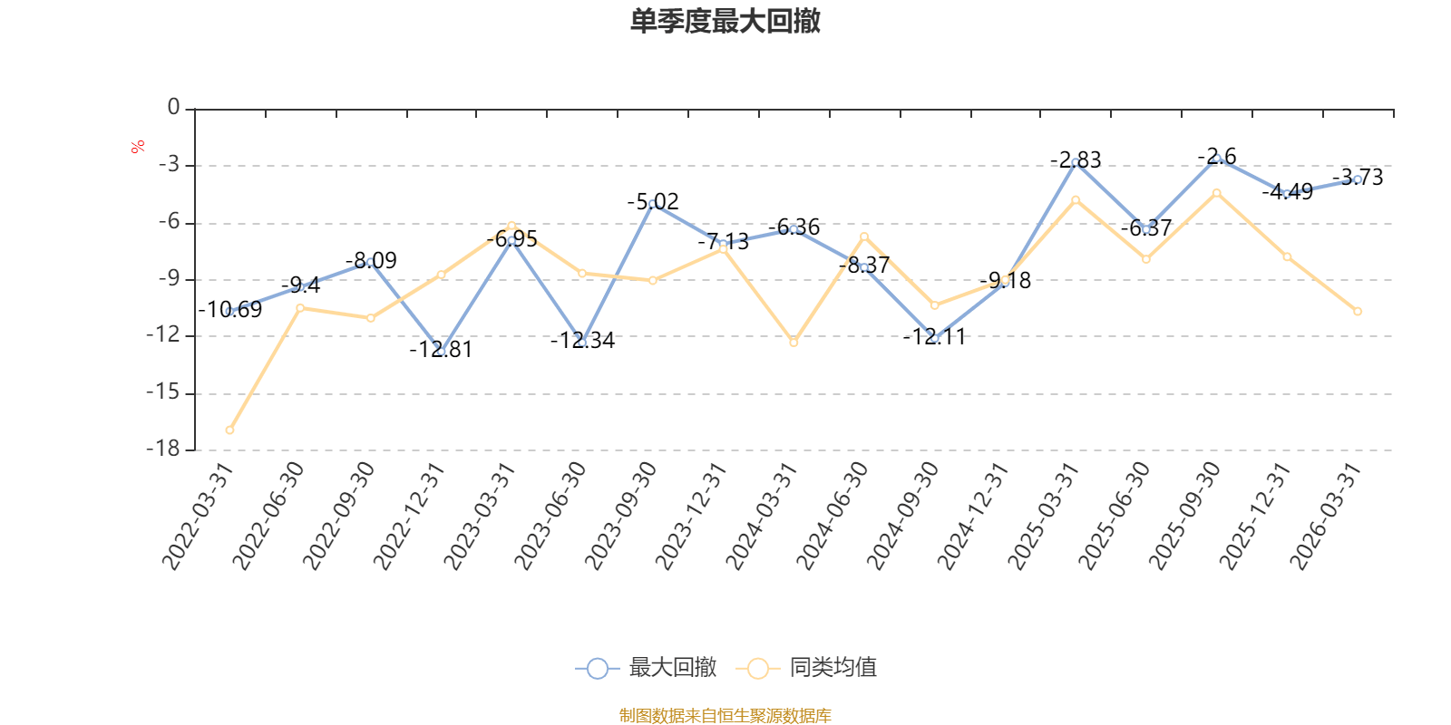截至4月9日,基金近三年最大回撤为18.43%,同类可比基金排名30/122。单季度最大回撤出现在2022年四季度,为12.81%。