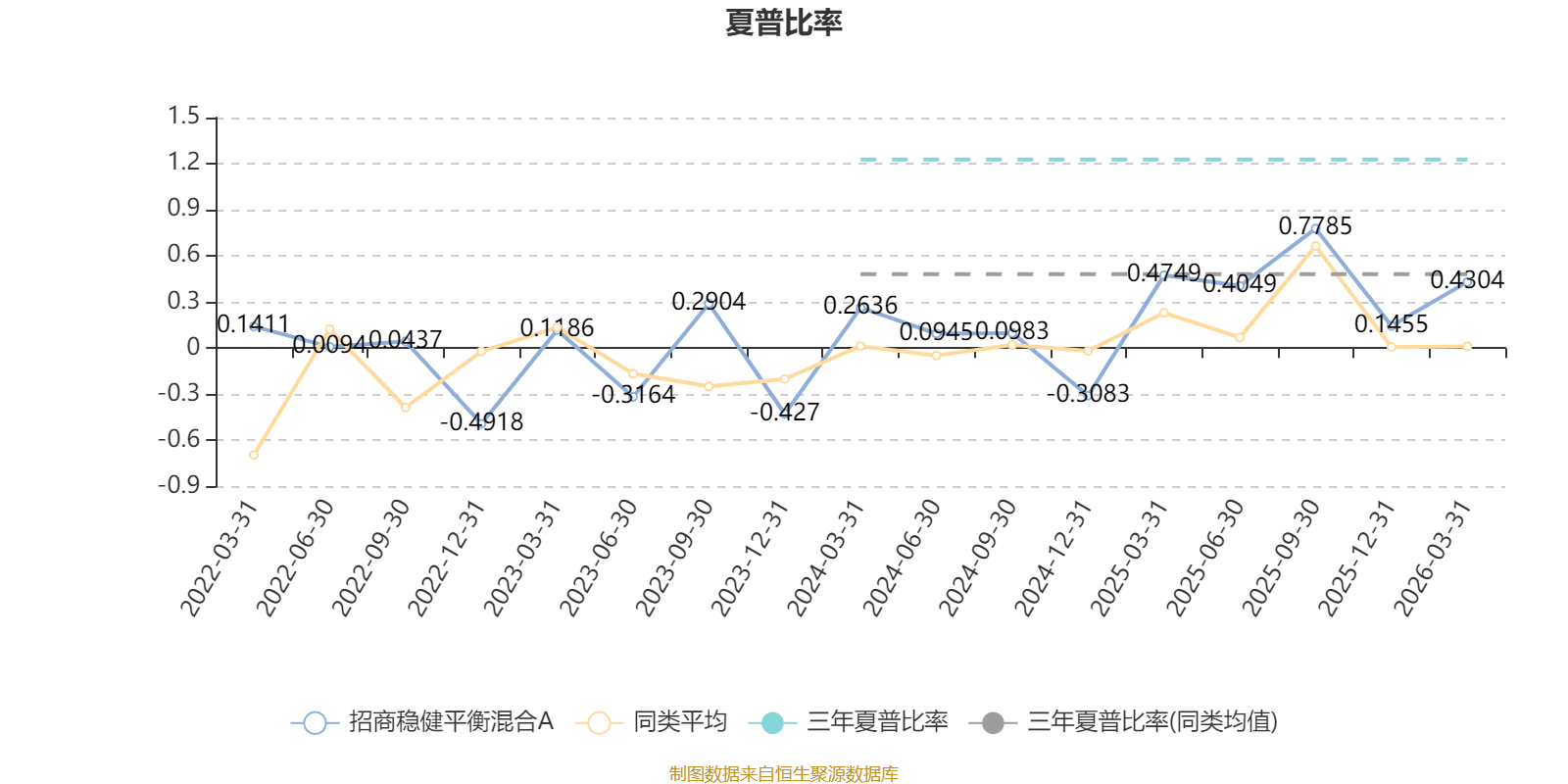 截至3月31日,基金近三年夏普比率为1.2269,位于同类可比基金1/124。
