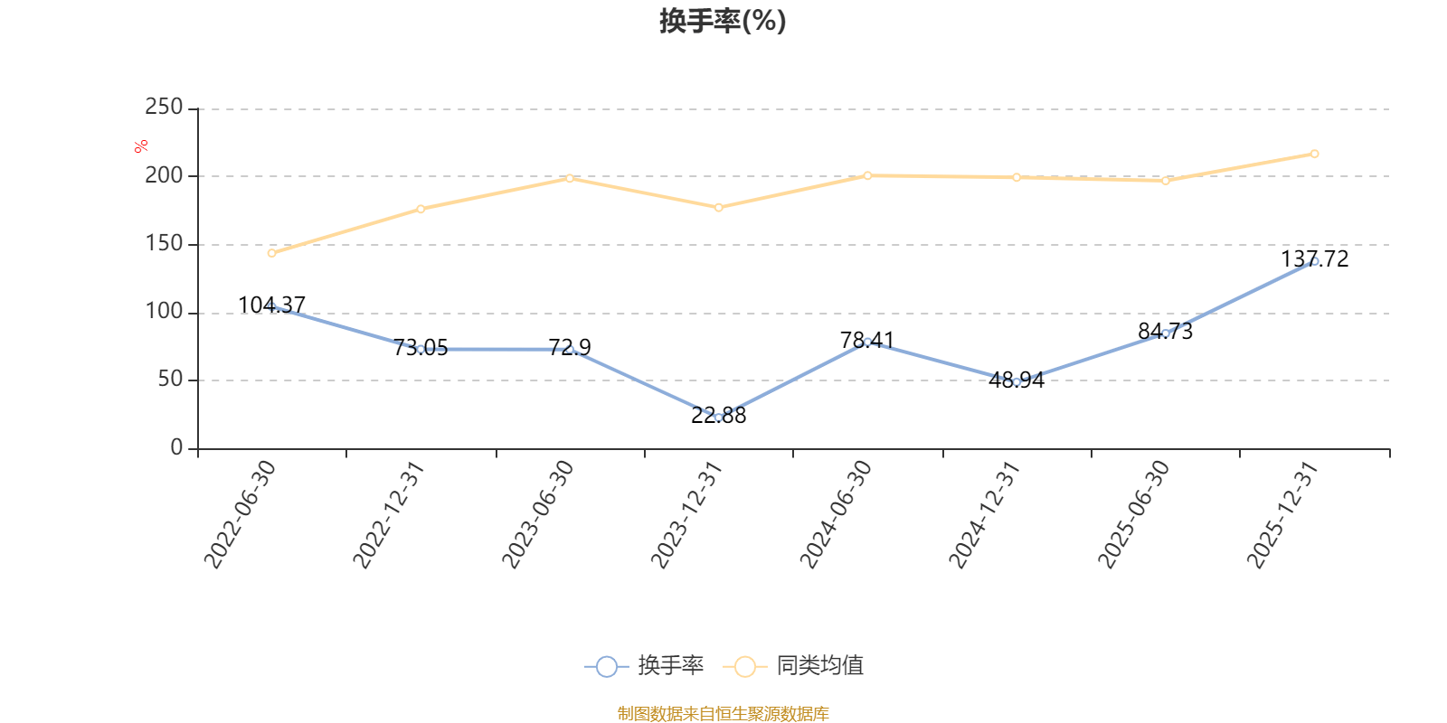 截至2025年12月31日,基金最近一年换手率约226.93%,持续低于同类均值。